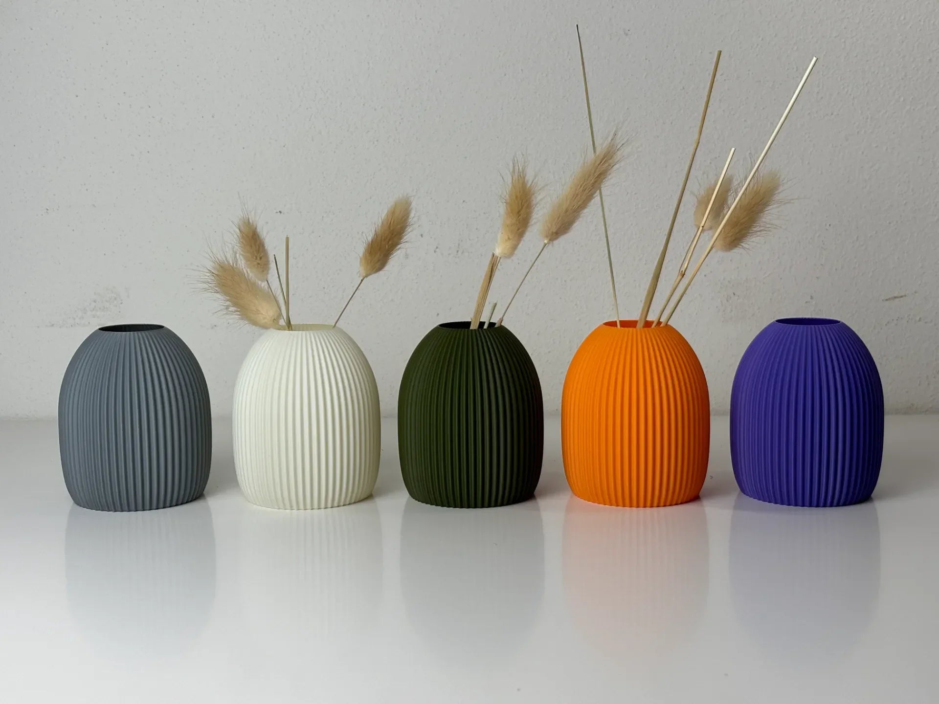 Gebruik de Lunetta vaas als solostuk of mix & match verschillende kleuren voor een levendige compositie. Ook perfect voor droogbloemen, siergrassen of als decoratief object.