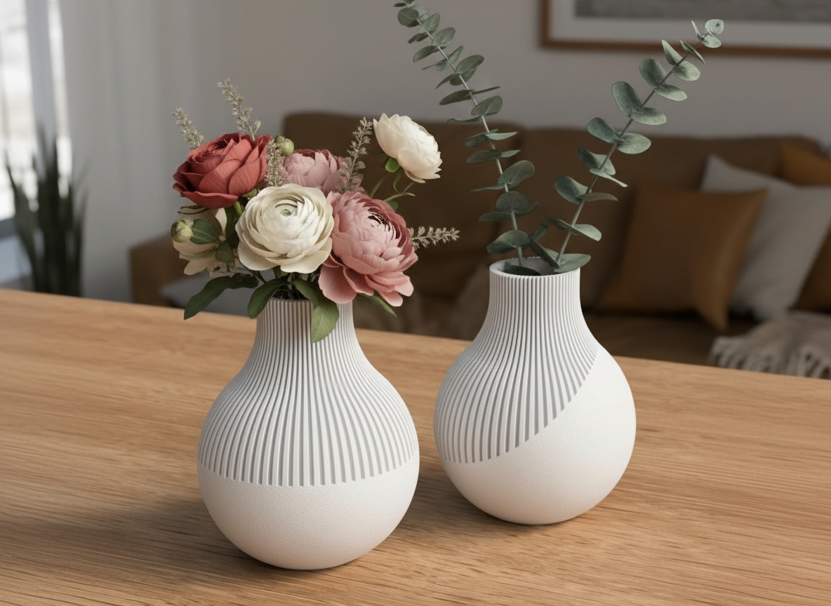 Een uitvoering waarbij het geribbelde patroon elegant horizontaal rond de vaas loopt voor een rustige, minimalistische uitstraling.